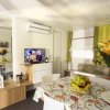 Appartamento monolocale con area giorno, letto matrimoniale, letto singolo, angolo cottura, bagno con doccia, asciugacapelli, Tv, climatizzatore e balcone.